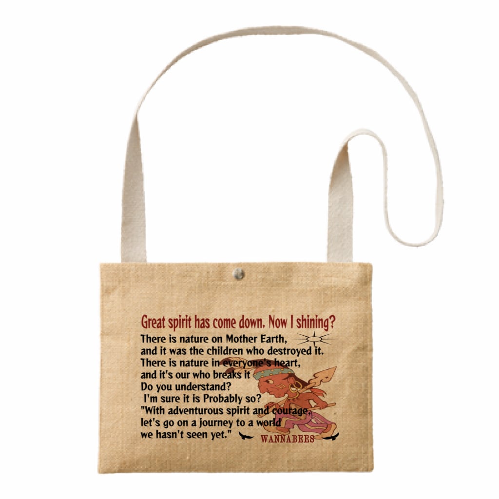 ジュート生地を使用したサコッシュです。世代問わずにお使い頂けるベーシックな形状となっており、口元にはホックボタンが付いております。また、ショルダー部分には綿のショルダー紐を使用しており、使いやすいサコッシュとなっております